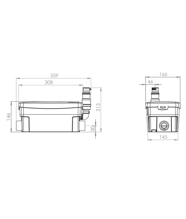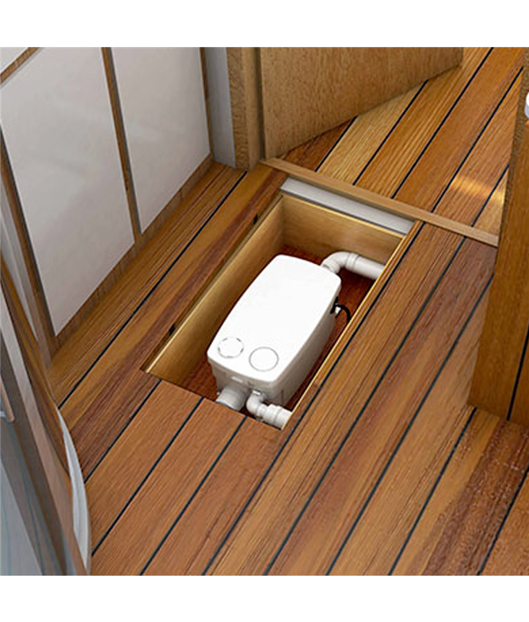 Com a bomba Sanimarin Pump em 24 V é possível fazer a instalação de um chuveiro e lavatório no local que desejar. A bomba tem dimensões reduzidas e pode ser instalada de maneira discreta em um gabinete. Bombeamento até 4 metros na vertical ou 30 metros na horizontal.