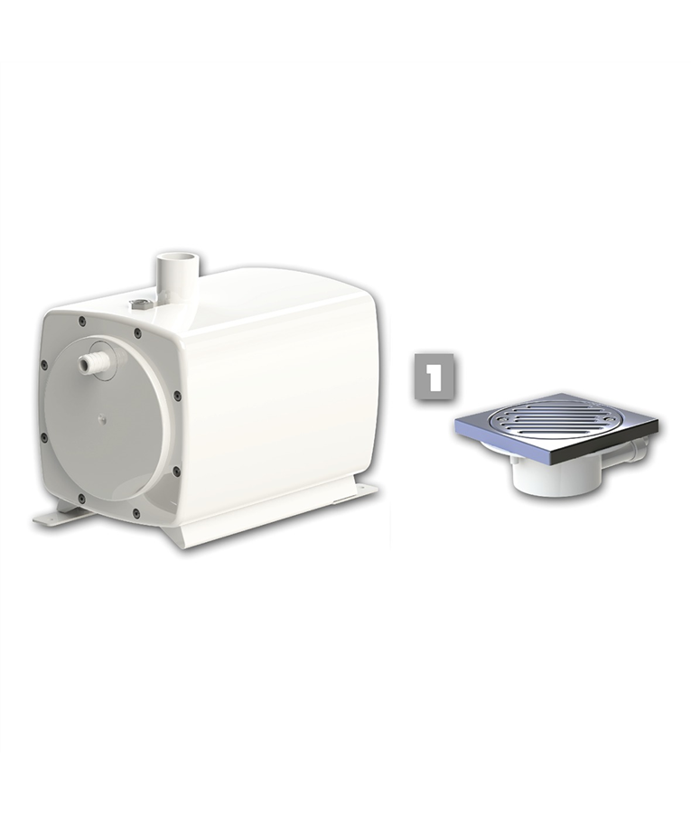 Ao escoar para dentro do ralo, as águas residuais pressionam um detector de nível que automaticamente envia um sinal de rádio frequência para a bomba, que pode estar a até 3 metros de distância. A bomba realiza a sucção e impulsiona as águas residuais a até 3 metros de altura.