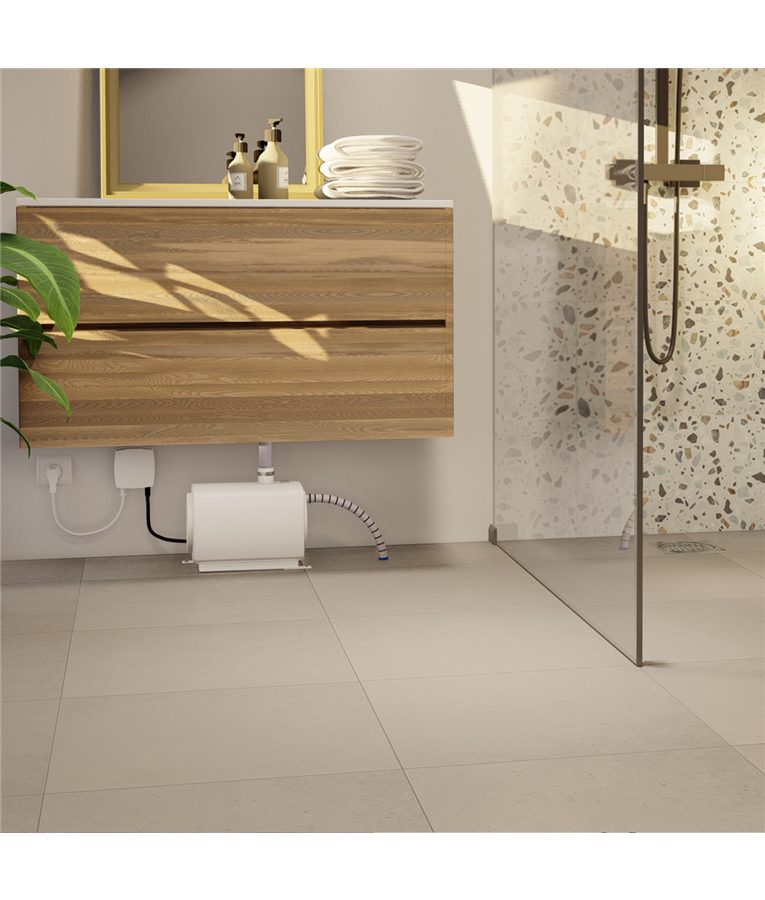 OBS: O aparelho SANIFLOOR+ deve ser instalado de forma que o acesso seja fácil para futuras manutenções, é necessário conectar a um ponto de eletricidade 220v.