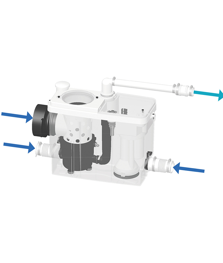 sistema de bombeamento com lâminas de trituração integrado permite evacuar