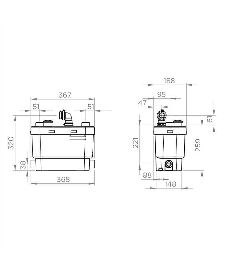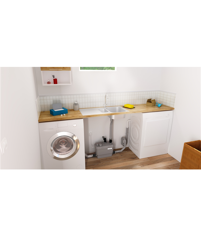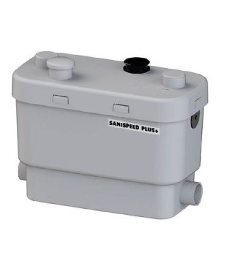 SANISPEED+ é a solução ideal para instalar até quatro lavatórios, cubas de cozinha, banheira, box de chuveiro, máquina de lavar ou lava louças em locais abaixo ou distantes da tubulação principal de esgoto, mesmo quando é impossível perfurar a laje para instalar um tubo de esgoto por gravidade.