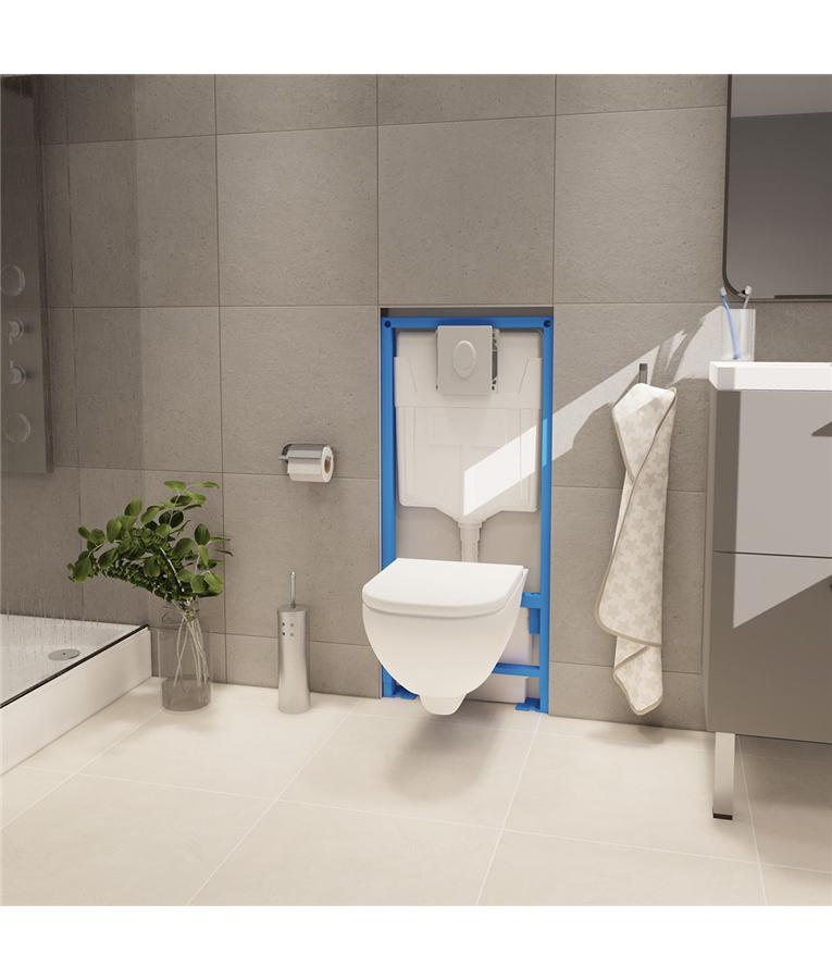 A estrutura do SANIWALL Pro Up é ajustável em altura para instalar o vaso suspenso na altura desejada! O funcionamento é totalmente automático, além de ser discreto.