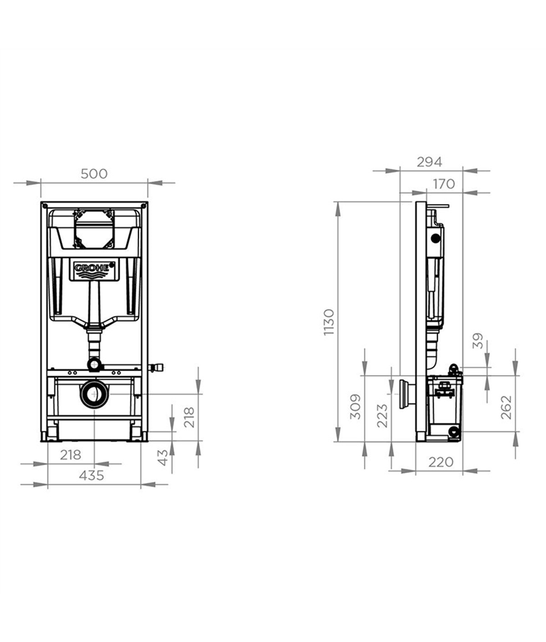 A caixa de descarga Grohe tem um acionamento duplo 3L / 6L.