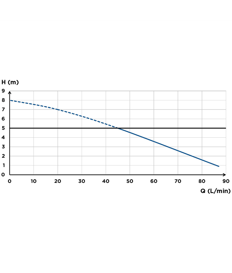 O triturador pode bombear o esgoto até 5 metros na vertical ou 100 metros na horizontal, através de um tubo de evacuação de 32 mm.